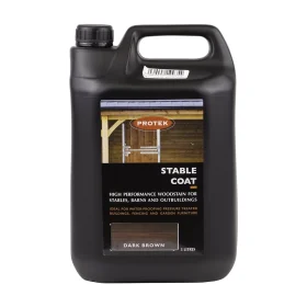 Protek Stable Coat in dark brown is perfect for giving timber stables and buildings a neat, consistent look. This rich, dark brown colour mimics the traditional oil mixtures used in the past but with a smooth, chocolatey finish that improves the timber’s natural beauty. It’s great for covering old colours and matching new repairs or extensions.